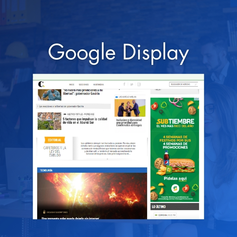 Llega a tu audiencia con anuncios visuales impactantes en millones de sitios web y aplicaciones. En DMKT, diseñamos campañas en Google Display que refuerzan la presencia de tu marca y generan conversiones estratégicas a través de formatos gráficos atractivos.